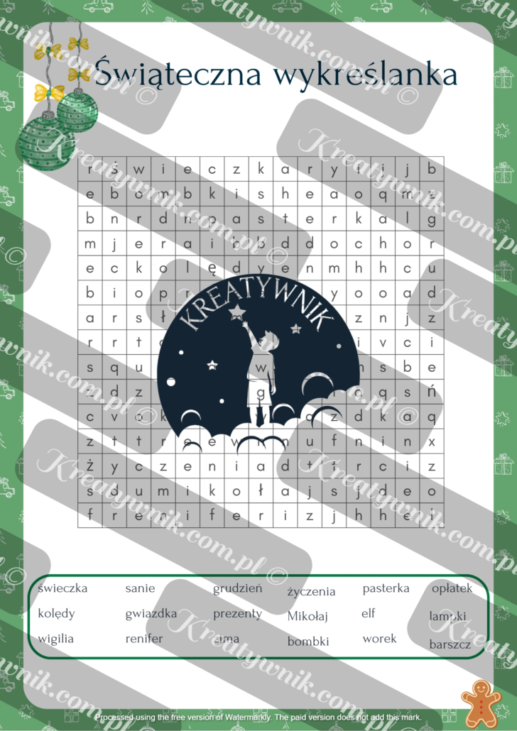 Przygotowaliśmy wyjątkowy pakiet świątecznych zadań dla dzieci w wieku 7-10 lat, który łączy zabawę z nauką i wprowadza najmłodszych w magiczny klimat świąt. W pakiecie znajdują się karty pracy na różnych poziomach trudności, co pozwala łatwo dopasować je do możliwości uczniów – zarówno młodszych, jak i starszych. Zestaw zawiera różnorodne łamigłówki i zagadki, od prostych krzyżówek, przez matematyczne łamigłówki, po zadania logiczne, które rozwijają myślenie i umiejętność rozwiązywania problemów. Znajdują się tu również zadania językowe, które pomagają ćwiczyć pisanie, czytanie i rozwijać słownictwo, idealne do wykorzystania w różnych klasach. Pakiet obejmuje także zadania na kodowanie i przeliczanie, wspierające naukę logicznego myślenia oraz podstaw matematyki, a także labirynty i szyfry, które uczą cierpliwości i strategicznego podejścia, sprawiając przy tym mnóstwo radości. Listy do Świętego Mikołaja zostały zaprojektowane tak, aby najmłodsi mogli je z łatwością wypełnić, a starsi uczniowie zmierzyli się z bardziej rozbudowanymi formami. Dodatkowo w zestawie znajdują się koperty do wycięcia i ozdobienia oraz świąteczne znaczki, które pozwolą nadać listom wyjątkowy charakter i rozwijają kreatywność dzieci poprzez własnoręczne dekorowanie. To idealny materiał dla nauczycieli i rodziców, który wspiera rozwój różnorodnych umiejętności dzieci w przyjemnej, świątecznej atmosferze.